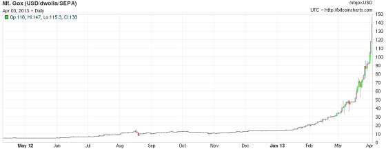 Bitcoin is een virtuele valuta die niet bewaakt wordt door een centrale bank en die niet in circulatie wordt gebracht door geldscheppende financiële instellingen. Een Bitcoin is een stukje code die verkregen is door ingewikkelde berekeningen. Er een gelimiteerd aantal Bitcoins in omloop en het aanbod groeit volgens een voorspelbaar patroon. Onvrede over ‘fiatgeld’ en de vermeende schaarste van de Bitcoins is voor sommigen genoeg reden om de virtuele munt te omarmen als alternatief geld. Er zijn momenteel ongeveer 21 miljoen Bitcoins in omloop. De prijs ligt rond de $110 per stuk.