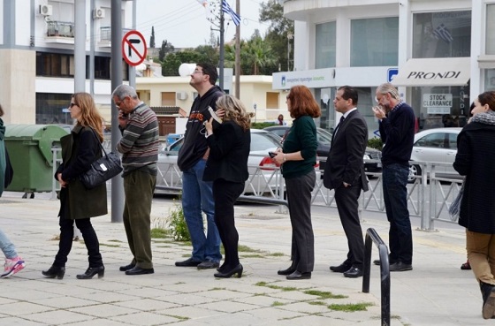 Een man die slechts €20 wilde pinnen kreeg dat niet voor elkaar. Sommige mensen kregen wel geld, anderen juist niet. Er waren ook mensen die na lang wachten met lege handen naar huis gingen, omdat ze geen geld konden krijgen van de automaat. 's Avonds waren er demonstraties van mensen die hun onvrede uitten over het aanpakken van de Cypriotische spaarders.