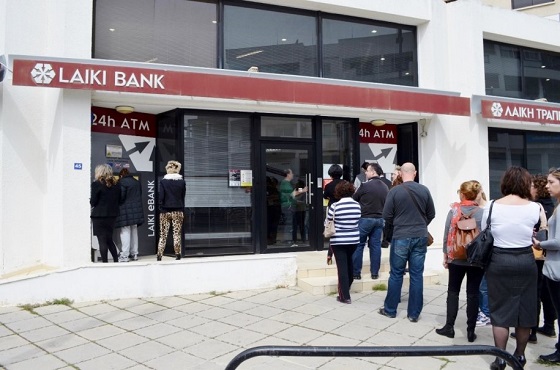 De foto's zijn de afgelopen dagen gemaakt door freelance fotojoualist Christina Avraam. Ze merkte op dat de bankmedewerkers in de bank nog aan het werk waren, maar dat de deuren op slot zaten. Ze vertelt hoe één man €700 wil opnemen en niet meer krijgt dan een ontvangstbewijs voor dat bedrag. Elders vertelde een bankmedewerker dat de bankautomaten niet naar behoren functioneren en aan sommige mensen geen geld geven. Op een gegeven moment stonden er bij een bankfiliaal van Laiki zeventig mensen te wachten.