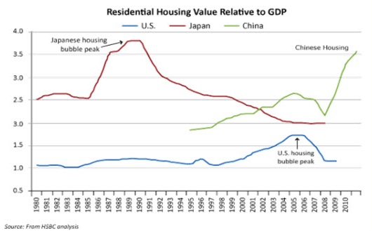 Dat de huizenprijzen te hard zijn gestegen in verschillende grote steden blijkt uit de een artikel dat Bloomberg vorig jaar publiceerde. Vastgoedhandelaren zouden de prijzen van bepaalde appartementen flink hebben verlaagd, tot woede en frustratie van vroege kopers die met veel moeite het geld bij elkaar kregen om de koop te sluiten. Deze huizenbezitters betalen soms wel de helft van hun inkomen aan een hypotheek van de bank, terwijl ze ook nog eens spaargeld van zichzelf en van familie hebben ingelegd. Als projectontwikkelaars vervolgens de prijzen met 25% verlagen doet dat pijn. Zeker als huiseigenaren ontdekken dat de projectontwikkelaars en makelaars veel winst maken op de verkopen. De Chinese overheid probeert de stijgende huizenprijzen al wat af te remmen, door de banken te verplichten minder geld uit te lenen en meer inleg van de huizenkoper te vragen. In Beijing zouden huizenkopers nu al 30% aan eigen geld moeten inleggen om een hypotheek te krijgen op een huis of appartement. Een daling van de huizenprijzen zou goed zijn om de markt weer in evenwicht te brengen, maar een harde en verwoestende crash met de omvang van de vastgoedbubbel in de V.S. is nog steeds niet uit te sluiten.