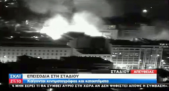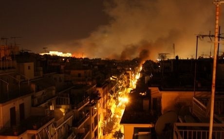 Vandaag waren er opnieuw opstanden in de Griekse hoofdstad Athene, waar de politie met groot materieel en traangas moest ingrijpen om de woedende bevolking in bedwang te houden. De laatste berichtgeving op Athensnews.gr leert ons dat de situatie nu echt uit de hand begint te lopen. Er zouden al verschillende gebouwen in brand zijn gestoken door demonstranten, waaronder panden met historische waarde, zoals een ondergrondse bioscoop die door de Gestapo als martelkamer werd gebruikt in WO II en de Griekse Nationale Bibliotheek. Ook een bankgebouw en een filiaal van Starbucks zijn vanavond in brand gestoken. De brandweer heeft onvoldoende capaciteit om alle branden te blussen, want bronnen melden dat sommige gebouwen al meer dan 40 minuten in brand hebben gestaan zonder dat er iets aan gedaan werd. Ook zijn er op tal van plekken winkelruiten veield.