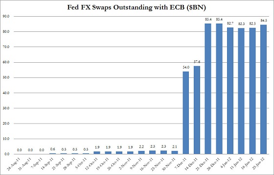 Dollarswap tussen FED en ECB nog steeds actief, afgelopen week was de omvang $84,5 miljard (afbeelding via Zero Hedge)