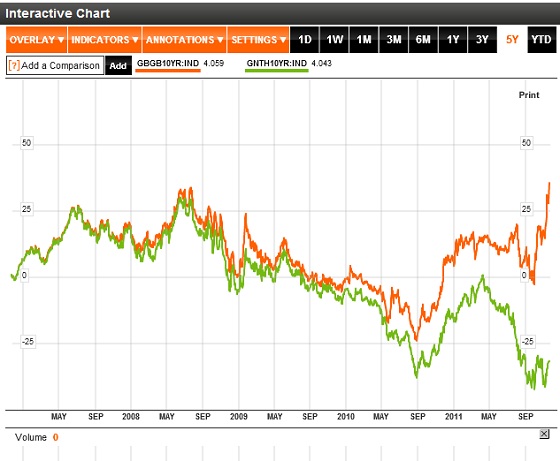 België zit vandaag al 527 dagen zonder een regering, waardoor het land zichzelf steeds dieper in de nesten werkt. Bij de redding van Dexia zijn er fouten gemaakt (er werd teveel geld betaald en er werden enorme garanties afgegeven) en begin deze week strandden de onderhandelingen voor een nieuwe regering opnieuw. Als gevolg van de onrust en onzekerheid stijgt de rentevergoeding op Belgische staatsobligaties enorm snel. Waar de meeste aandacht momenteel uitgaat naar Italië en Spanje is het toch België dat de sterkste beweging laat zien. Momenteel staat de rente op 10-jaars obligaties van onze zuiderburen op 5,48%, tegenover 3,6% aan het begin van oktober. De rente staat nu zelfs hoger dan op het oude record van ongeveer 5% uit 2008, het jaar waarin de val van Lehman Brothers de crisis in een stroomversnelling bracht.