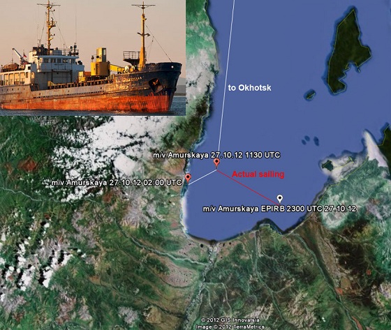 De Amurskaya zou vanmorgen om kwart over acht Moskou tijd (05:15 GMT) een noodsignaal hebben afgegeven. Het schip bevond zich toen naar verluid bij de Shantar eilanden in het zuidwesten van de Zee van Ochotsk. De olietanker Novik, die als eerste anticipeerde op het noodsignaal van de Amurskaya, kon het schip op de aangegeven locatie niet vinden. De zoektocht naar het schip waar 700 ton gouderts in zou moeten zitten is voortgezet. Ten tijde van de vermissing waren de weersomstandigheden slecht.