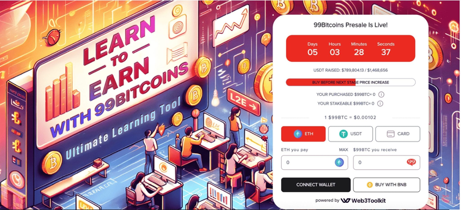 De native 99BTC token is met name ontwikkeld om gebruikt te worden binnen het nieuwe Learn-to-Earn platform. Dit unieke nieuwe platform gaat gebruikers in staat stellen om crypto te verdienen, terwijl ze opgeleid worden over de crypto markt. De 99BTC is te verdienen als bepaalde taken worden afgerond. In totaal staat er voor bijna 80 uur aan lesmateriaal klaar voor dit platform.