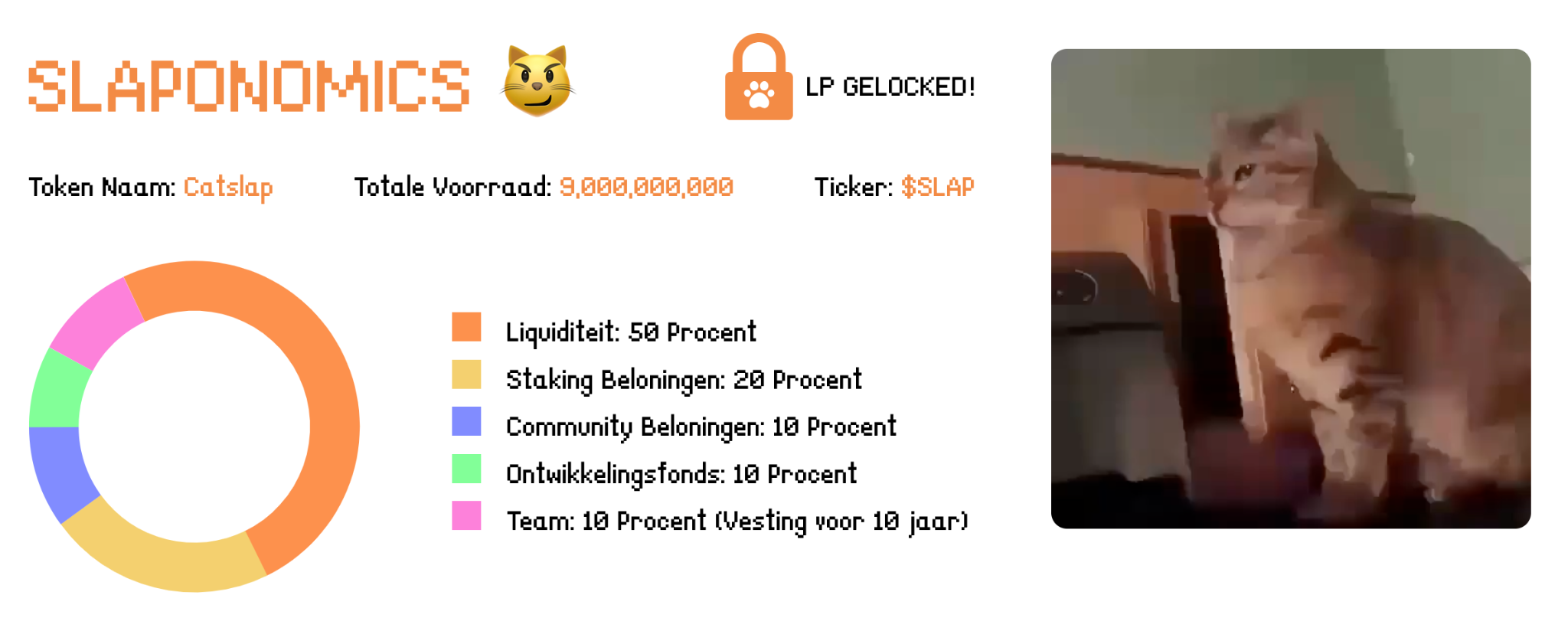 In tegenstelling tot de meeste meme coins is CatSlap($SLAP) direct gelanceerd zonder presale. De tokens waren direct verkrijgbaar voor iedereen, op deze manier wil CatSlap iedereen een gelijke kans bieden. Na de lancering steeg de koers al redelijk snel, momenteel kun je de token kopen voor $0,00707457 met ETH, USDT of met creditcard. De token kun je ook via Best Wallet aanschaffen, je krijgt de tokens dan direct in je wallet te zien.
