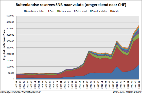 Explosieve groei balanstotaal SNB, buitenlandse valuta vormt een steeds grotere component van het totaal