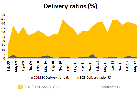 In de eerste helft van dit jaar steeg de vraag naar gouden sieraden in China met 43,6% ten opzichte van een jaar geleden tot 383,9 ton. De vraag naar goudbaren en gouden munten steeg zelfs met 86,5% ten opzichte van de eerste helft van 2012 en kwam uit op 278,8 ton. Het aanbod van goud uit Chinese goudmijnen bedroeg in de eerste helft van dit jaar 192,8 ton, een stijging van 8,9% ten opzichte van dezelfde periode vorig jaar.